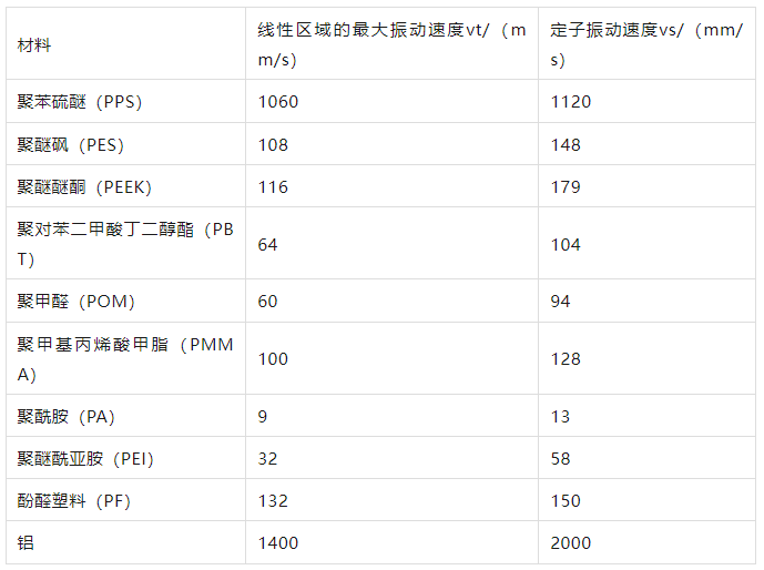 表4不同材料的线性区域的最大振动速度和定子振动速度